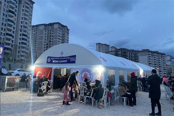 'Ramazan paylaşmaktır' sloganıyla ramazan etkinliklerine başlayan Kağıthane Belediyesi, ramazan faaliyetlerini deprem bölgesinde de sürdürüyor. Malatya'nın Battalgazi ilçesinde her akşam bin kişiye yemek dağıtılmak üzere iftar çadırı kuruldu. Depremin vurduğu ilçede yaralar sarılırken, depremzede vatandaşlar ramazanın manevi havasını iftar çadırında hissediyor.