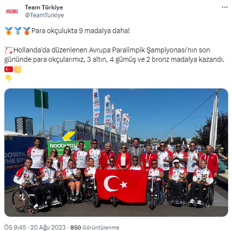 Para okçulukta 9 madalya Milli okçular, Hollanda'da düzenlenen Avrupa Paralimpik Şampiyonası'nda 3 altın, 4 gümüş ve 2 bronz madalya kazandı. 2296 OKUNMA 20-08-2023 22:44 Güncelleme : 20-08-2023 22:44 Milli okçular, Hollanda'da düzenlenen Avrupa Paralimpik Şampiyonası'nda 3 altın, 4 gümüş ve 2 bronz madalya kazandı. YORUMLAR Website Disqus Adınız * E-Posta Adresiniz * Yorumunuz * SPOR Galatasaray: 3 – Bodo Glimt: 1 Bozdağ Sessiz Şanlıurfaspor, Faruk Çelik’i Mumla Arıyor Amedspor deplasmanda 2-1 kazandı Tomruk İBB soruşturmasında ifade verdi Kızılkaya Tarım Şanlıurfaspor :0-2 Seza Çimento Elazığspor Çok Okunanlar 1 Zeynel Abidin Taşiyan: ‘29 Bin TL ile Olmaz! Sağlık Emekçisinin Hakkı 90 Bin TL’nin de Üzerindedir 2 Peru, artan suç oranlarıyla mücadele için Lima'da 30 günlük olağanüstü hal ilan etti 3 Kekemelik Bir Engel Değil, Farklı Bir Konuşma Biçimidir-(VİDEO) 4 Mehmet Akif İnan Hastanesi’nde Başarılı Beyin Tümörü Ameliyatı-(VİDEO) 5 Trump'ın Putin ile ikinci zirve gerçekleştirme umutları suya düştü