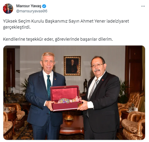 “Yüksek Seçim Kurulu Başkanımız Sayın Ahmet Yener iadeiziyaret gerçekleştirdi. Kendilerine teşekkür eder, görevlerinde başarılar dilerim.”