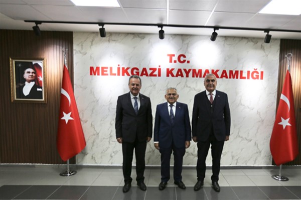 Başkan Büyükkılıç, “Melikgazi Kaymakamlığını ziyaret ederek Kaymakamımız Bülent Karacan ve Melikgazi Milli Eğitim Müdürümüz Hacı Kaya ile bir araya geldik. Kendilerine çalışmalarında kolaylıklar diliyorum” dedi.