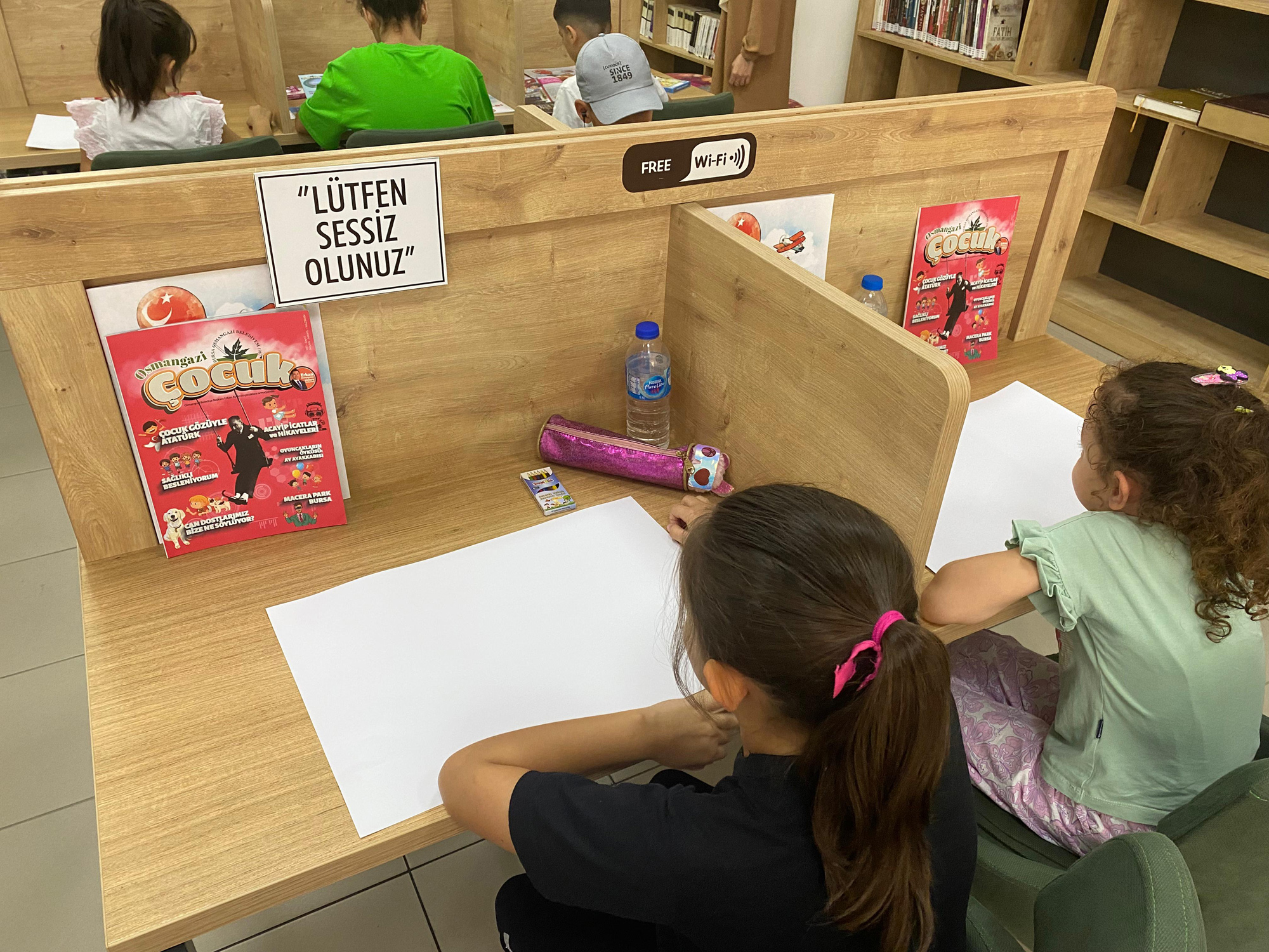 Etkinliğe katılan çocuklar ile kütüphane kullanımı hakkında sohbet gerçekleştiren kütüphane yetkilileri, ziyaretçilerine kütüphanedeki kitapları inceleme fırsatı sundu. Çocuklar, kütüphaneyi gezdikten sonra resim yaptı.