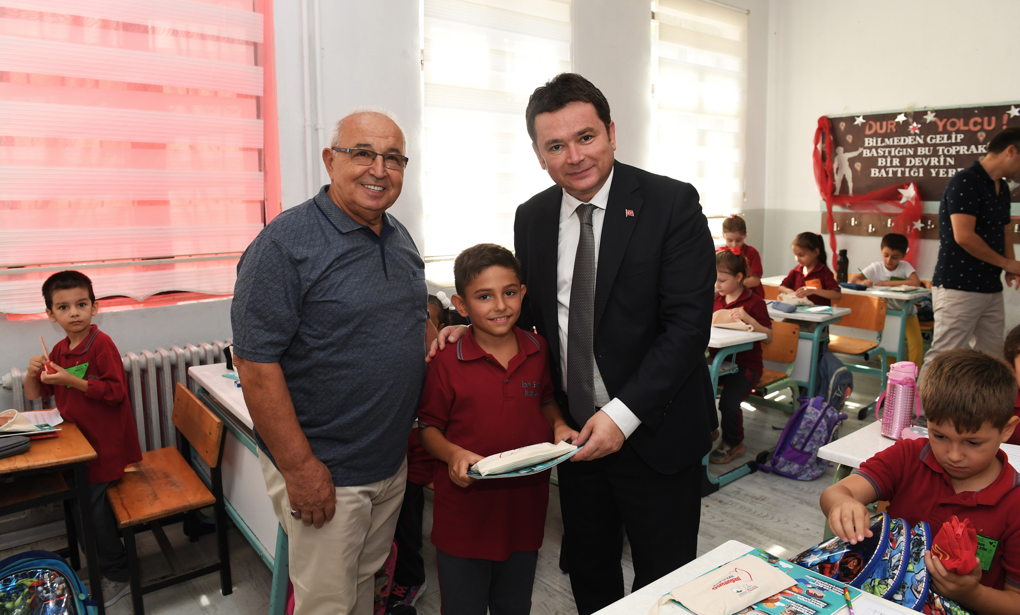 Öğrencilerin telaşını ve mutluluğunu paylaşan Başkan Aydın, yeni sınıf öğrencilerini sınıflarında ziyaret ederek, onlara çeşitli hediyeler dağıttı.