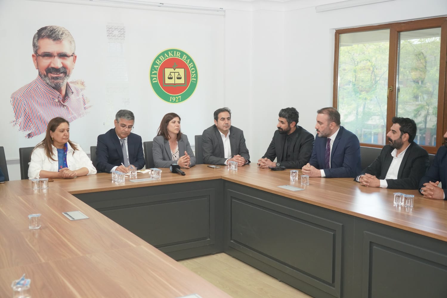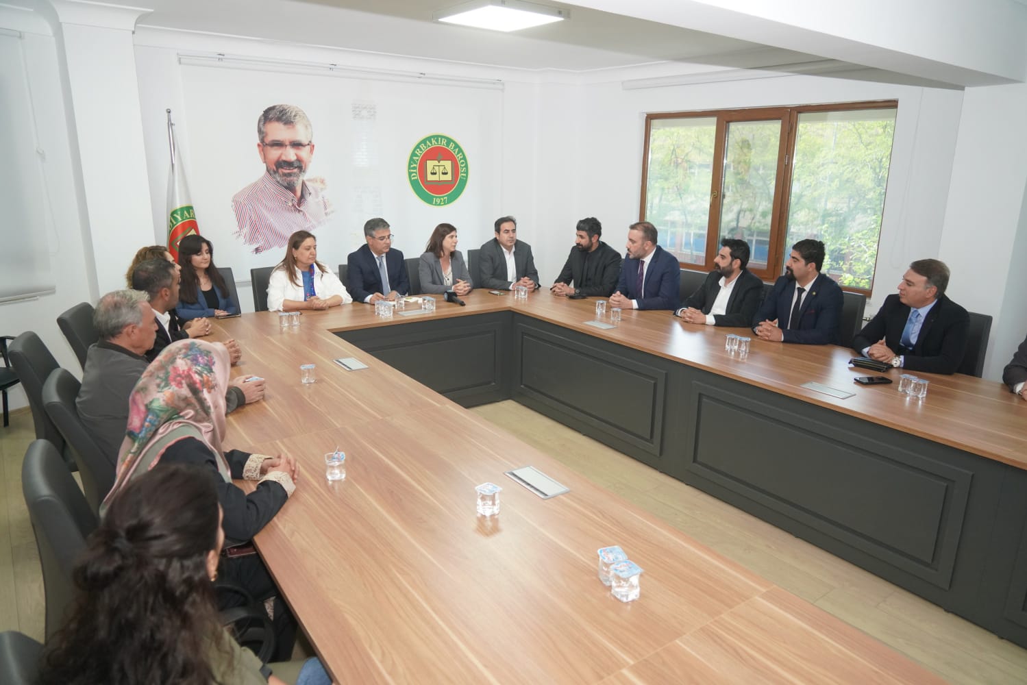 Eş başkanlar, Diyarbakır Barosu Başkanlığı binasında Güleç ve yönetim kurulu üyeleri tarafından karşılandı.