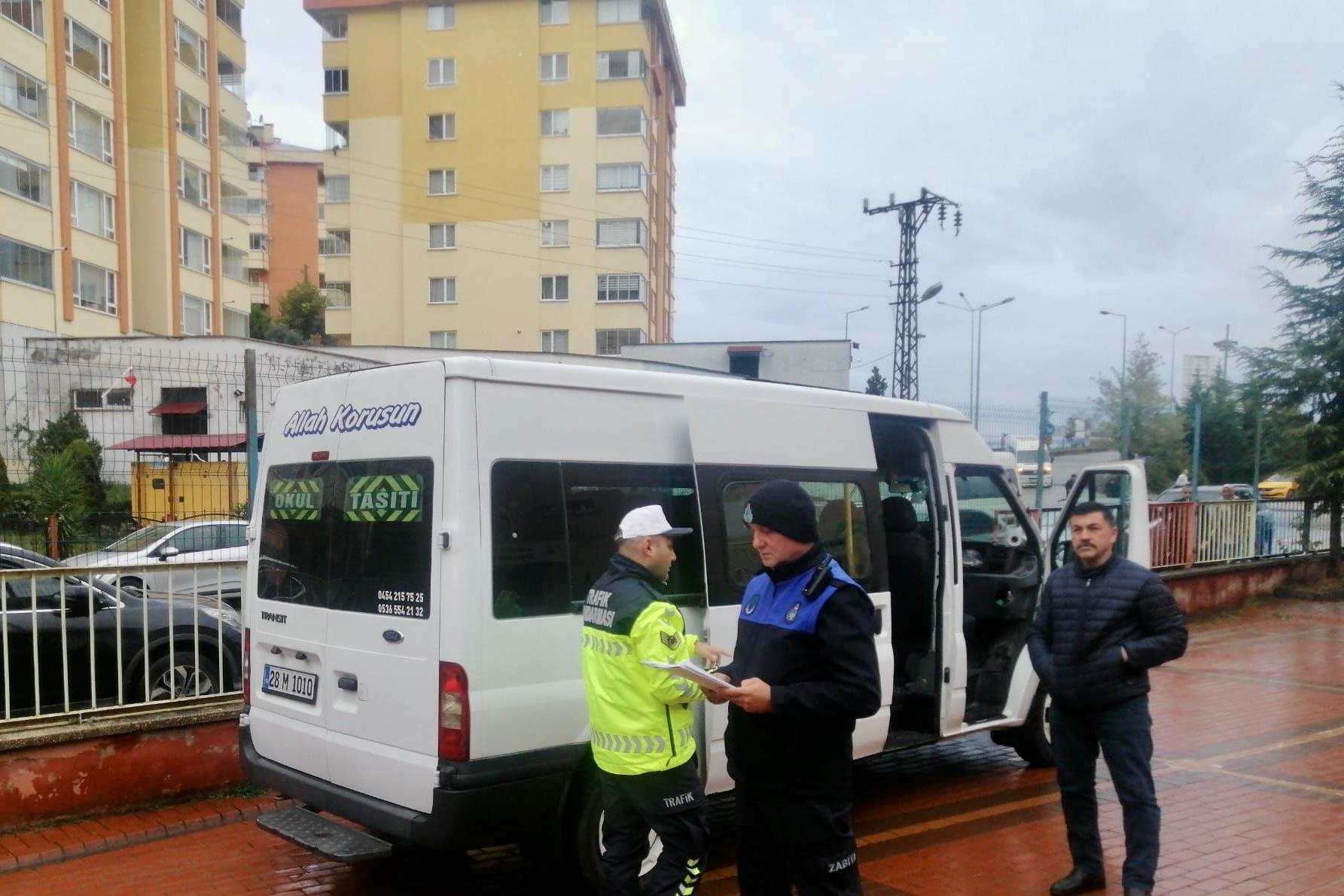 Giresun’da gerçekleştirilen denetimlerde, servis araçlarının ruhsat, sigorta, araç içi güvenlik önlemleri ile sürücülerin gerekli olan belgeleri kontrol edildi.
