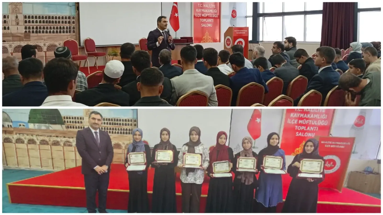 Şanlıurfa’nın Haliliye İlçe Müftülüğüne bağlı Kur’an kurslarında eğitimlerini tamamlayan 46 öğrenci, hafızlık belgelerini almanın sevincini yaşadı.