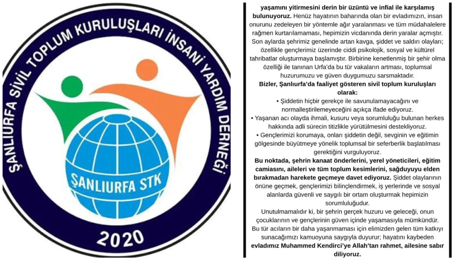 Şanlıurfa Sivil Toplum Kuruluşları Platformu, Bozova’da çırak olarak çalışan 15 yaşındaki Muhammed Kendirci’nin uğradığı ağır şiddet sonucu hayatını kaybetmesiyle ilgili yazılı bir açıklama yaparak şehir genelinde artan şiddet olaylarına dikkat çekti.