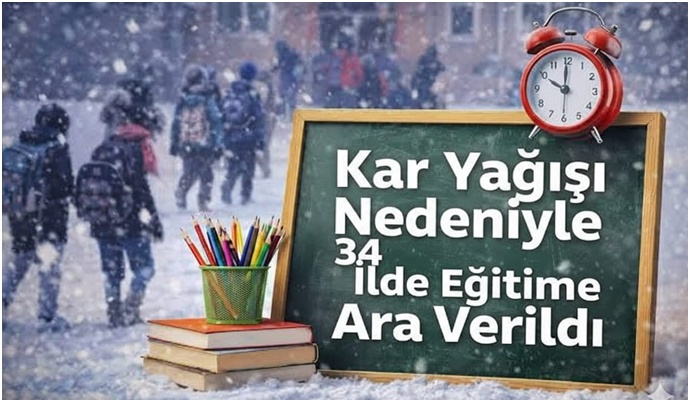 Türkiye genelinde etkili olan yoğun kar yağışı ve olumsuz hava koşulları nedeniyle 34 ilin tamamında okullar tatil edildi.