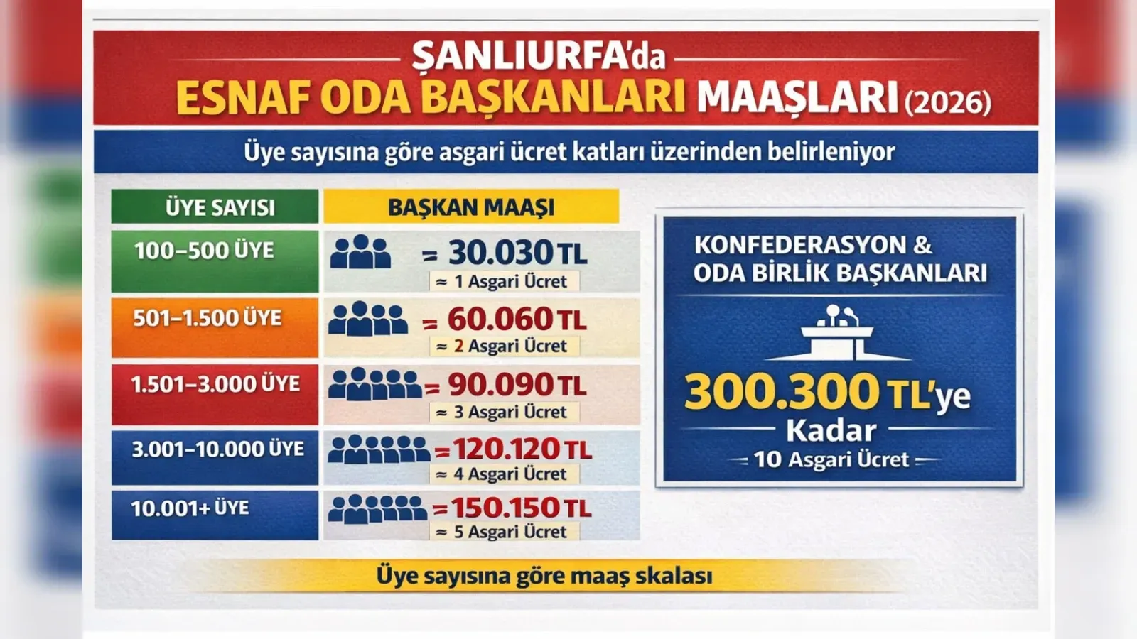 Esnaf oda başkanlarının maaşları sabit değil; 2026 yılı itibarıyla asgari ücretin katları üzerinden belirleniyor ve üye sayısına göre değişiyor.