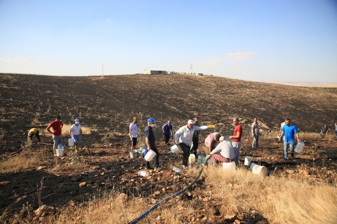 Bugün ise rüzgar çok şiddetli bu nedenle alevler hızlı yayıldı. Yangının ilk çıktığı yerde müdahale hızlı yapılabilse yangın kontrol altına alınabilirdi. 10 -15 dakika gibi bir sürede gelmesi gereken itfaiye ekipleri yaklaşık iki saat sonra buraya gelebildi." Sulama sistemlerinin zarar görmesinden dolayı kendi imkanlarıyla fidanları suladıklarını anlatan Ekinci, "En az 2 milyon TL zararımız bulunuyor. Kovalarla gördüğünüz gibi fidanlara su vererek onları kurtarmaya çalışıyoruz. Ama kurtarılacak gibi görünmüyorlar. Devlet yetkililerinden zararımızın karşılanmasını talep ediyoruz" diye konuştu.