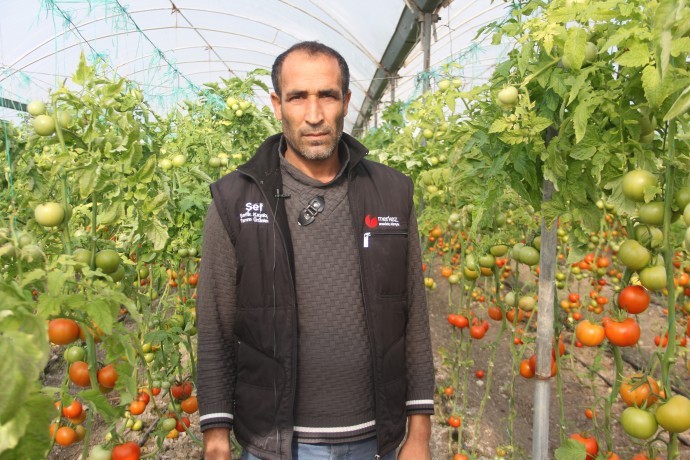 Mersin'in Akdeniz ilçesine bağlı kırsal Adanalığolu Mahallesi’ndeki serasında organik domates ekimi yapan Mehmet Dizlek (41), 20 yıldır çiftçilikle uğraştığını dile getirdi.