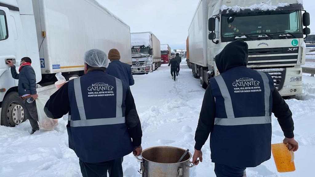 Şehri etkisi altına alan şiddetli kar yağışı ile beraber şehir merkezinde ana arter yolların açılması için yoğun çaba sarf eden Gaziantep Büyükşehir Belediyesi, ilçelere de desteğini sürdürüyor. TAG Otoyolu’nda kar yağışının neden olduğu kaza nedeniyle yaşanan kapanma sonucunda yolda kalan vatandaşların son durumunu öğrenmek ve yol açma çalışmalarını yerinde incelemek için bölgeye giden Başkan Fatma Şahin, yetkililerden bilgi aldı.