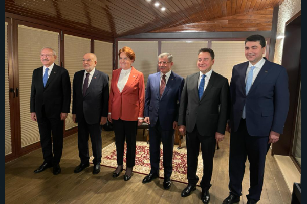 CHP Genel Başkanı Kemal Kılıçdaroğlu, İYİ Parti Genel Başkanı Meral Akşener, Saadet Partisi Genel Başkanı Temel Karamollaoğlu, Demokrat Parti Genel Başkanı Gültekin Uysal, Gelecek Partisi Genel Başkanı Ahmet Davutoğlu ve DEVA Partisi Genel Başkanı Ali Babacan çalışma yemeğinde bir araya geldi.