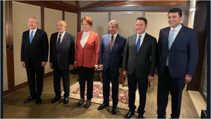 CHP Genel Başkanı Kemal Kılıçdaroğlu, İYİ Parti Genel Başkanı Meral Akşener, Saadet Partisi Genel Başkanı Temel Karamollaoğlu, Demokrat Parti Genel Başkanı Gültekin Uysal, Gelecek Partisi Genel Başkanı Ahmet Davutoğlu ve DEVA Partisi Genel Başkanı Ali Babacan çalışma yemeğinde bir araya geldi.