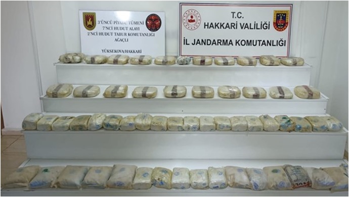 Milli Savunma Bakanlığından (MSB) yapılan açıklamada, ''Beraberindeki katırla İran hududundan ülkemize girmeye çalışan bir şahıs Hudut Kartallarımız tarafından engelledi. İran tarafına geri kaçan şahsın bıraktığı katırda 68 kilogram eroin ve 1 kilogram afyon sakızı olduğu değerlendirilen uyuşturucu madde tespit edilerek jandarmaya teslim edildi.'' bilgisi verildi.