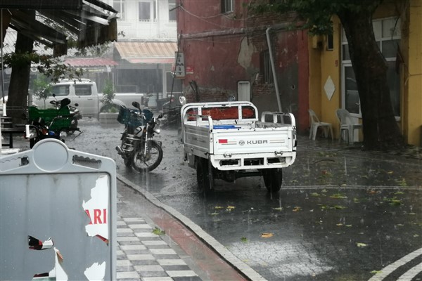Çanakkale'de kuvvetli gök gürültülü sağanak yağış ve dolu etkili oldu.