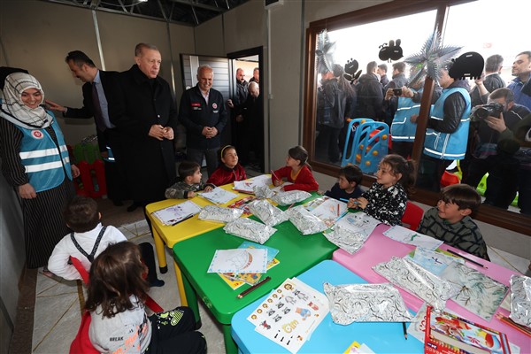 İncelemeler sonrası Cumhurbaşkanı Recep Tayyip Erdoğan, Genel Başkan Devlet Bahçeli, Başkan Fatma Şahin ve beraberlerindeki heyet, konteynır kentlere yerleşen depremzedeleri ziyaret ederek sohbet etti.