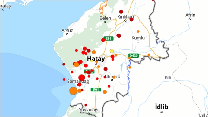 Boğaziçi Üniversitesi Kandilli Rasathanesi Ve Deprem Araştırma Enstitüsü (KRDAE) verilerine göre, 05:26'da Hatay'ın Samandağı bölgesinde meydana gelen deprem, yerin 11,5 km derinliğinde gerçekleşti.